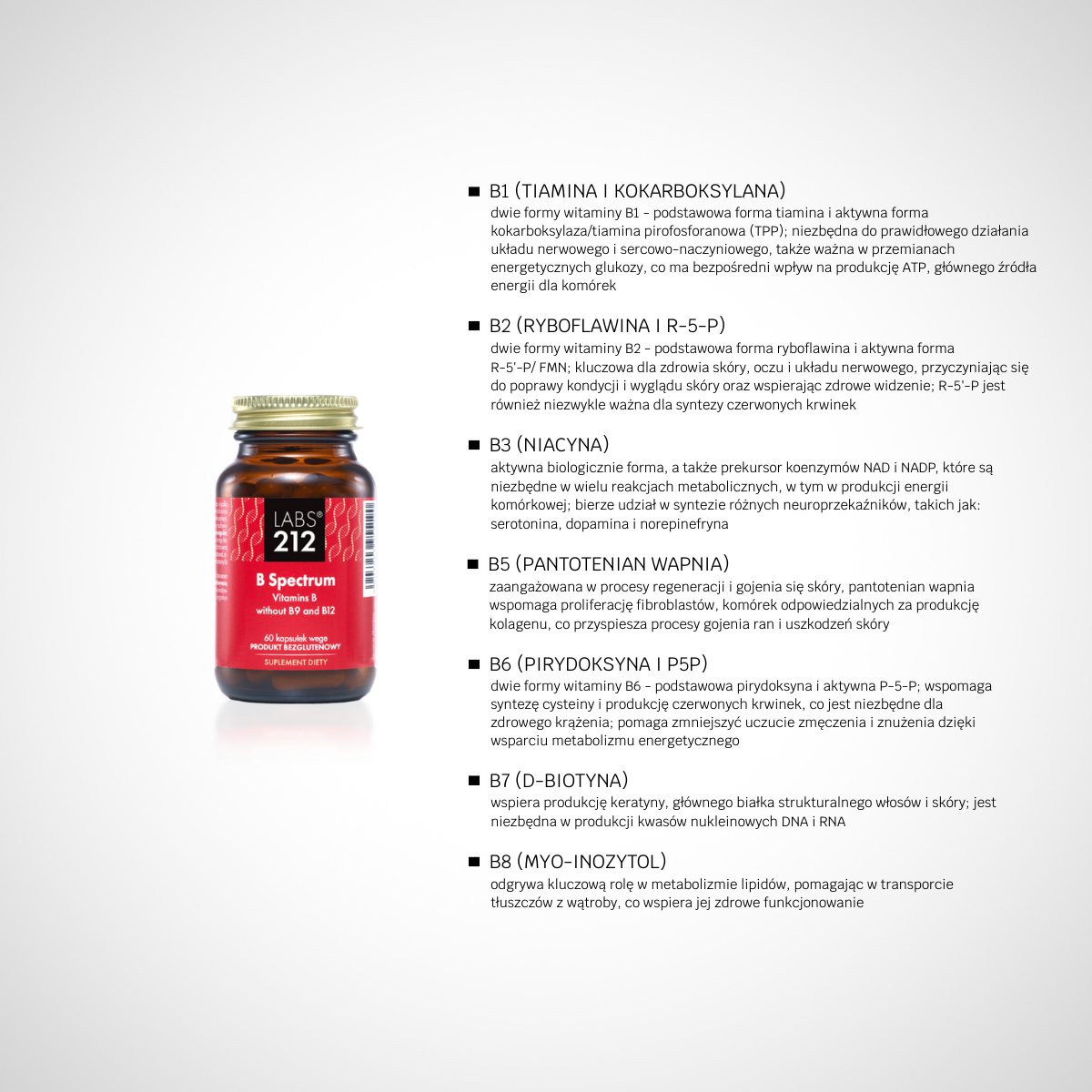 B Spectrum dietary supplement is a formula that is an innovative blend of B vitamins, except for vitamins B9 (folic acid) and B12 (cobalamin). It gives a fresh perspective on vitamin B supplementation by bringing together different forms of the same vitamin in one product.