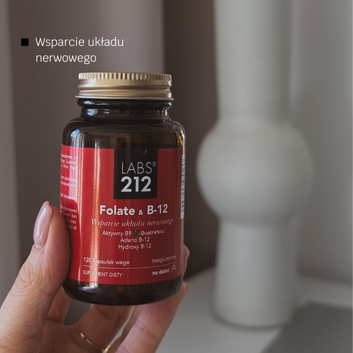 Suplement diety Folate & B-12 to preparat w postaci kapsułki zawierający witaminę B12 w formie adenozylokobalaminy i hydroksykobalaminy oraz witaminę B9 w formie aktywnego metabolicznie kwasu foliowego – soli glukozaminowa kwasu (6S)-5-metylotetrahydrofolianu Quatrefolic®.