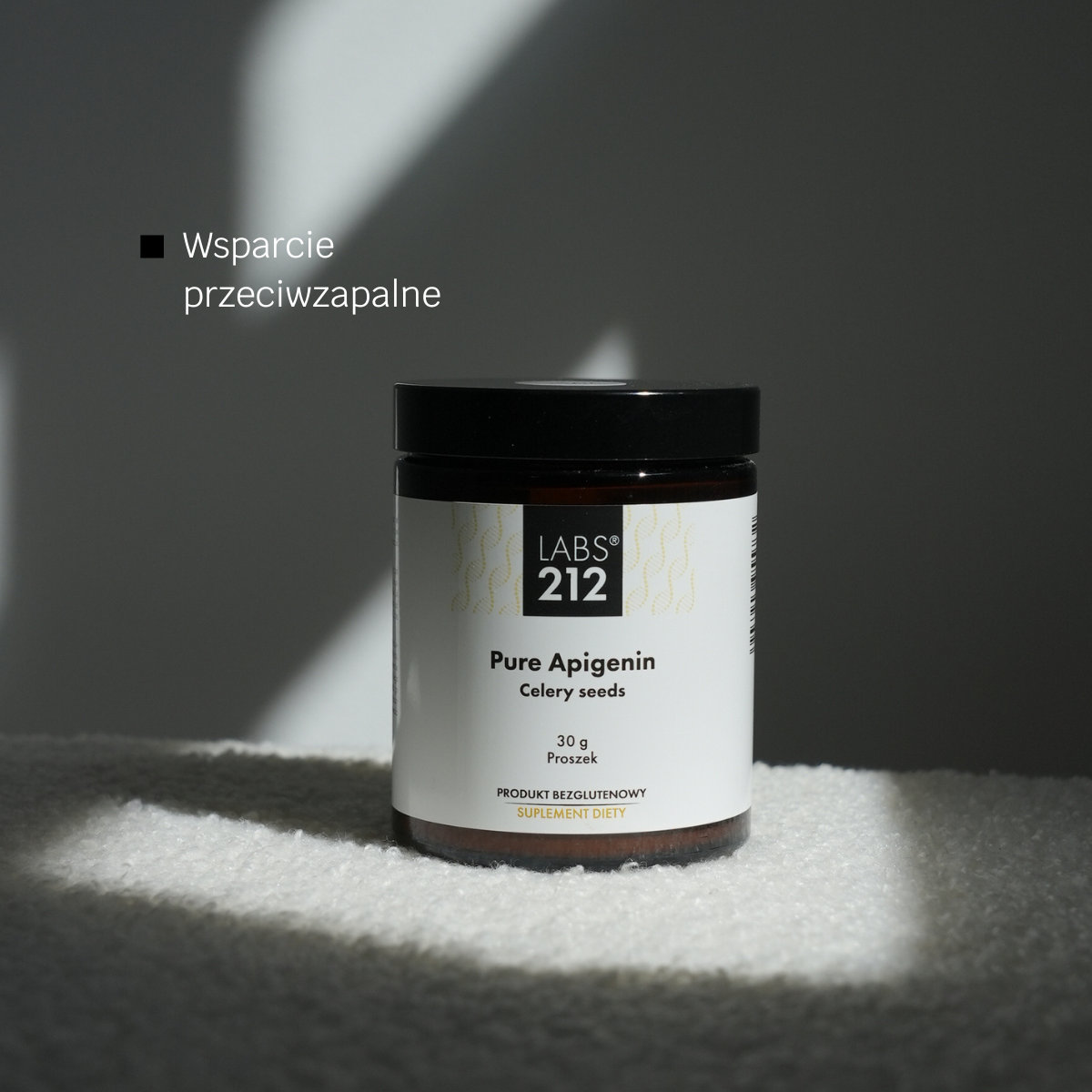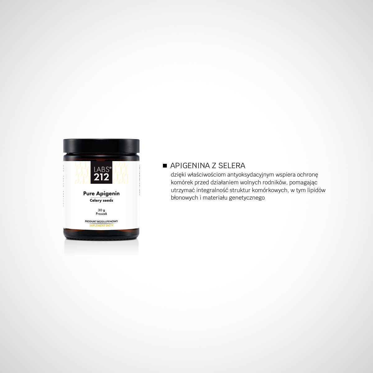 Suplement diety Pure Apigenin to preparat w postaci proszku zawierający ekstrakt z nasion selera naciowego standaryzowany do 98% apigeniny.