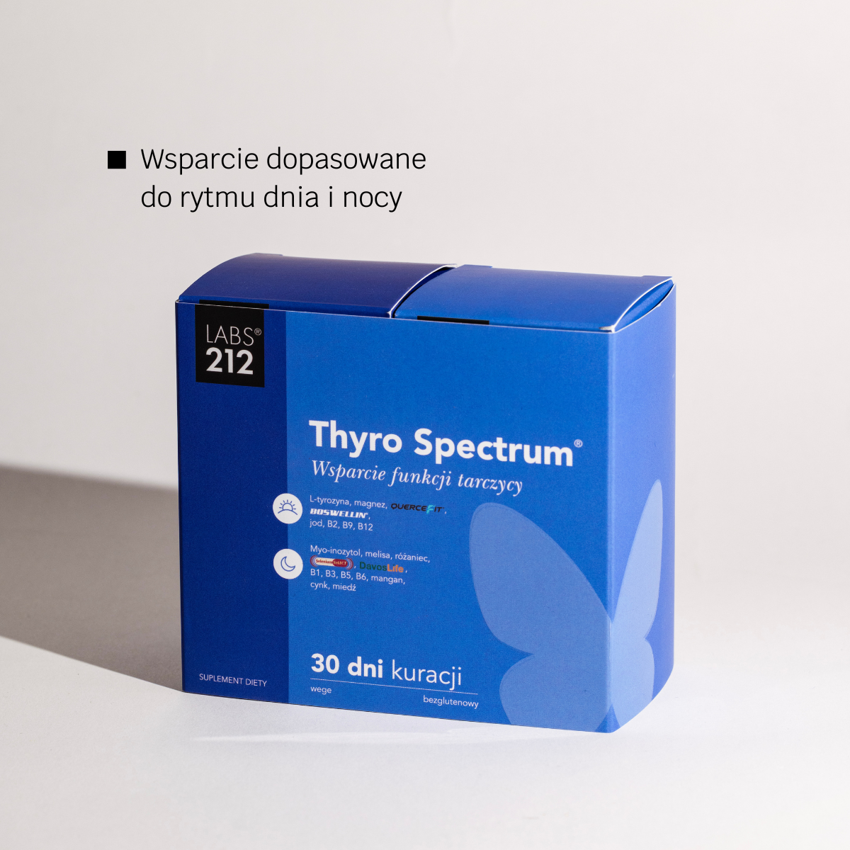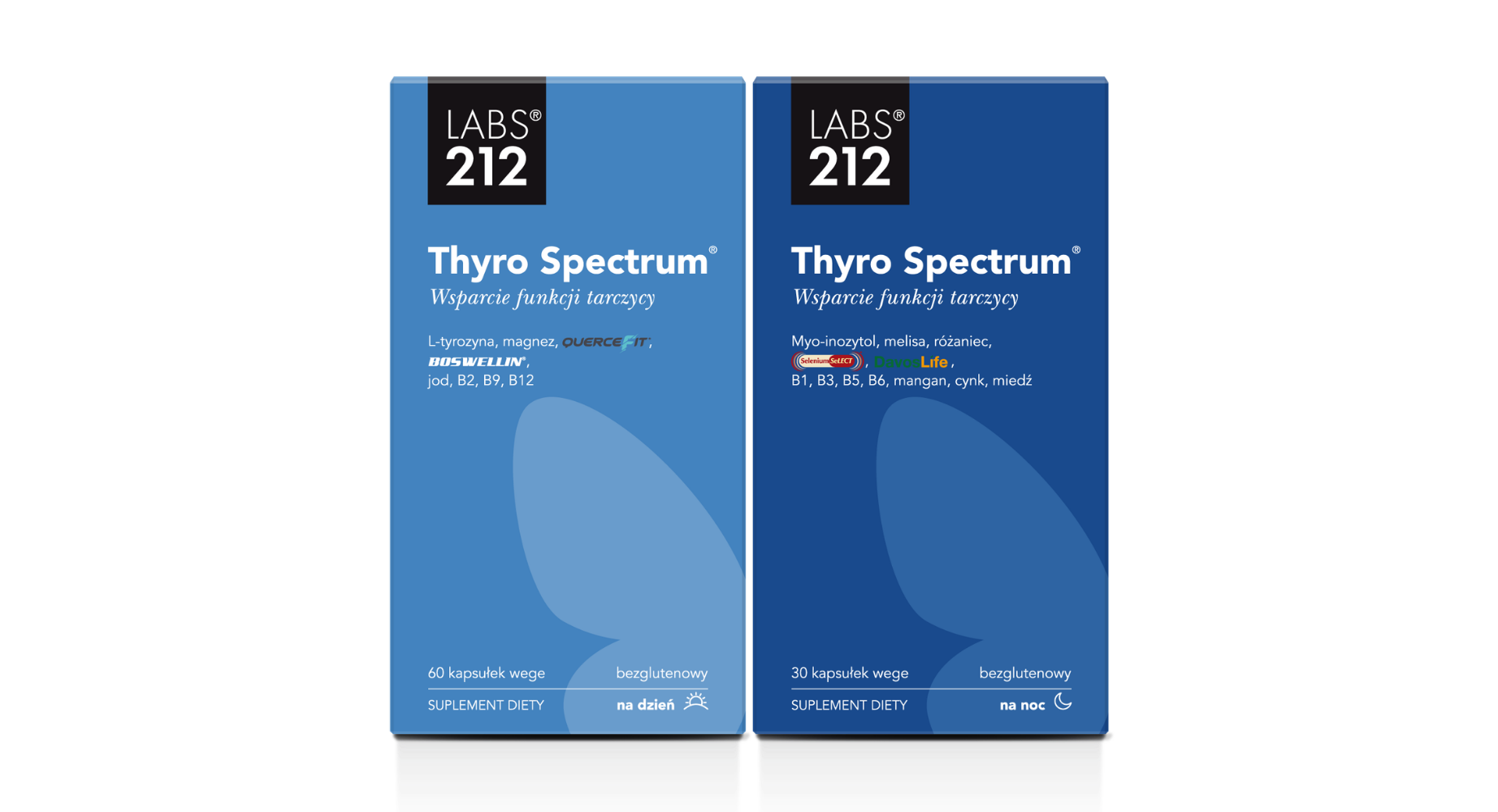 Zestaw dwóch suplementów wspierających pracę tarczycy: Thyro Spectrum® na NOC oraz Thyro Spectrum® na DZIEŃ.